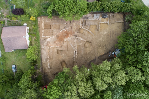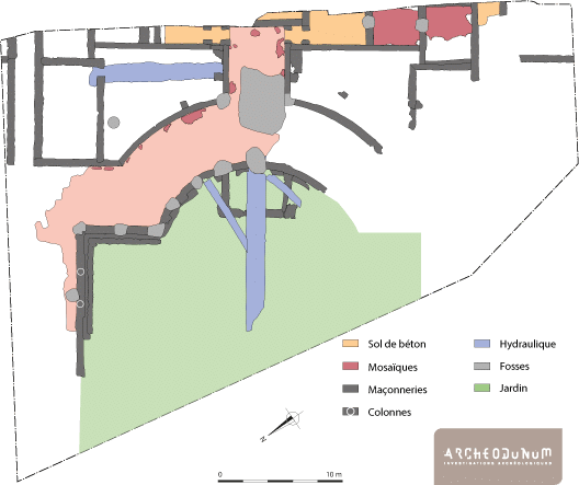Au printemps 2019, une équipe de l’entreprise Archeodunum a réalisé une fouille archéologique au 13 rue de la Sarrazinière à Sérézin-du-Rhône (69). Cette opération était un préalable à la construction de logements sociaux par Vilogia. Sur 1250 m², au cœur d’un parc ombragé, nos archéologues ont exploré une luxueuse villa gallo-romaine (fig. 1).