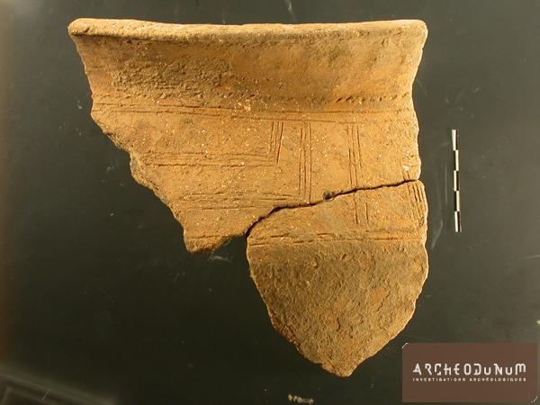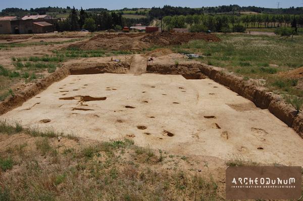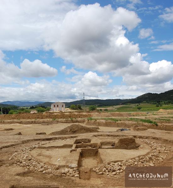 Une opération d’archéologie préventive a été menée sur l’emprise d’un futur lotissement, au lieu-dit « Le Castillet », rue du château, à Tournissan (Aude). Le site est localisé à quelques centaines de mètres au nord du cœur du village actuel, dans la continuité d’un lotissement déjà existant au lieu-dit « Le Château ». Dans le cadre du projet d’aménagement, un diagnostic archéologique a été réalisé à la fin de l’année 2006, par D. Rolin (Inrap), révélant avec plus de précision ce que la prospection terrestre, menée par G. Sanchot la même année, avait suggéré. Trois types de vestiges ont été mis au jour : un monument funéraire attribué au Chasséen (4500 – 3500 av. J.-C.), les vestiges d’une occupation domestique attribuée au Bronze final IIIb (900 – 700 av. J.C.) et une grande fosse d’extraction de matériaux datée du Néolithique final (3000 – 2500 av. J.C.) (non prescrite). La fouille archéologique, réunissant les deux prescriptions « âge du Bronze » et « Enclos Néolithique », s’est déroulée du 13 mai au 30 juin 2008.Dans le secteur 1 « âge du Bronze », 52 faits ont été identifiés, et fouillés, sur les 350 m² décapés. Ils se présentent tous sous la forme de structures en creux, conservées sur une assez faible profondeur (de 6 à 41 cm). La moitié d’entre eux a livré du mobilier archéologique, principalement composé de fragments de céramique. Au sein de ces faits, on distingue : un tronçon fossé très arasé, des fosses de forme ovale, des petites cuvettes circulaires pouvant être interprétées comme des bases de trous de poteau, des fosses circulaires dont le comblement renfermait d’importantes quantités de matériel. Ces divers éléments viennent documenter une occupation datée du Bronze final IIIa ou IIIb.