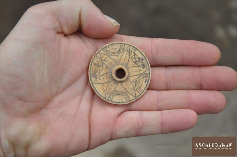 L’occupation héritée de l’Antiquité ne semble pas avoir perduré au-delà du VIe siècle. Il faut manifestement attendre le bas Moyen Age pour que le secteur retrouve une attractivité nouvelle. C’est dans ce contexte qu’apparaît, en bas de pente, une première chaussée. La datation de ces éléments de voirie  repose essentiellement sur la typologie des fers à cheval, combinée aux analyses stratigraphique et historique, à l’observation des quelques tessons découverts, et à la réalisation d’une datation radiocarbone.