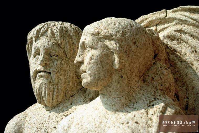 Au plan du discours architectural, les mausolées d’Avenches ? En Chaplix combinent deux systèmes bien distincts. Tout d’abord une construction conforme au plan de base, marquée par une vaste exèdre frontale, des faces latérales en demi-cercle et un massif quadrangulaire à l’arrière. En élévation et en façade, ce premier mouvement évoque en partie l’arc de triomphe, où l’arche centrale correspondrait à l’exèdre. Il affecte toutefois une morphologie plus élancée, puisqu’il est doté, au-dessus d’un attique normal, d’un second attique en retrait, lequel est encore coiffé d’un fronton.