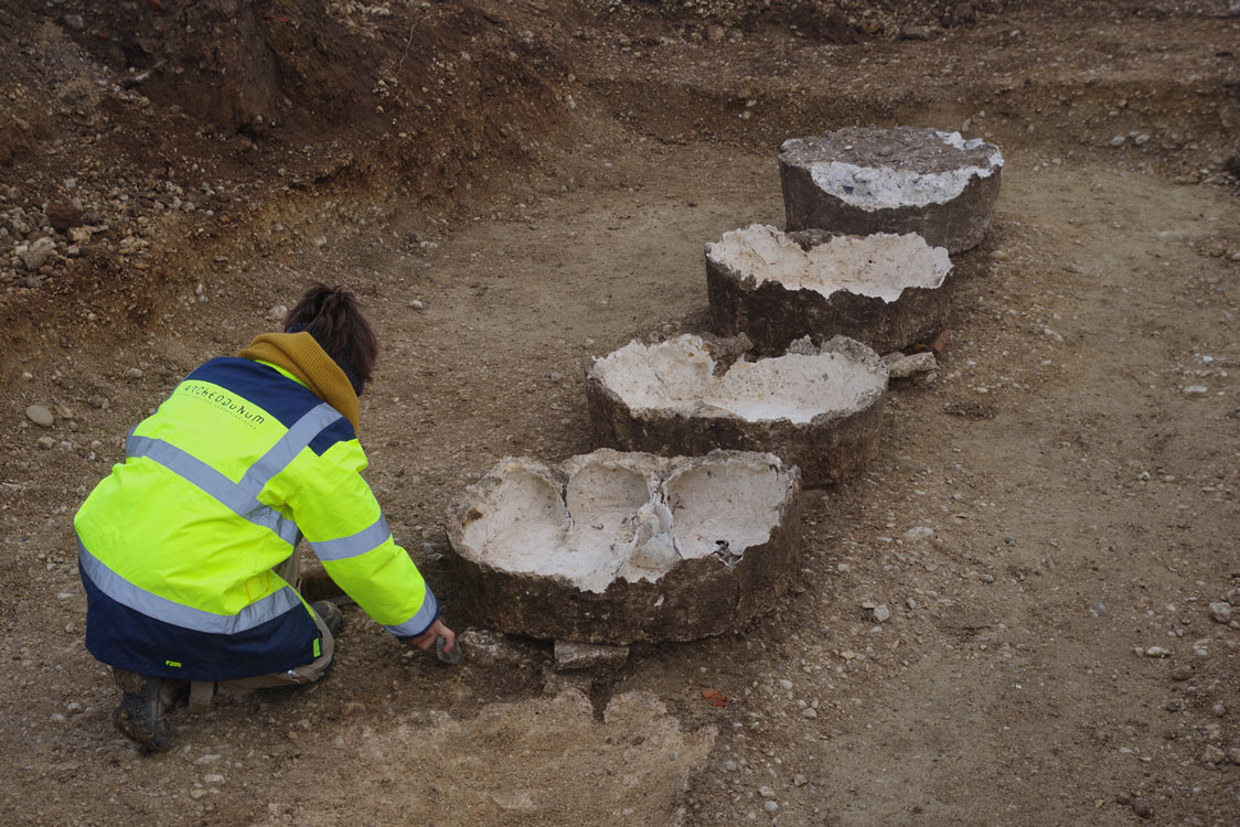 L’opération réalisée en 2021 entre les numéros 220 et 251 et à l’angle de la rue de Saint-Didier à Briord (Ain, 01) en amont du projet d’aménagement d’une maison individuelle a permis de documenter l’évolution d’un secteur de l’agglomération antique de Briord en rive droite du Rhône. La surface de l’assiette du projet, d’environ 2070 m2, se situe non loin du centre du village actuel et à une centaine de mètres à l’est de l’opération de diagnostic du Cimetière (Le Saint Quinio 2019). Cette opération et celle de la rue de Saint-Didier (Le Saint-Quinio 2021) avaient permis de suivre le tracé d’un axe viaire correspondant à une rue de l’agglomération antique autour de laquelle se développent des ensembles bâtis. C’est cette même voirie qui a pu être documentée au cours de la fouille dans ses différents états qui s’échelonnent de la première moitié du Ier siècle de notre ère à la fin du IIIe siècle, et ce, de manière synchrone avec le reste du site. La rue structure le quartier dès les premiers temps de l’occupation et sert d’appui au tracé de parcelles qui seront fossilisées par des vestiges bâtis au cours de l’évolution du secteur. Outre la voirie qui constitue un ensemble à part entière (parcelle C), une première parcelle a ainsi été reconnue à l’ouest (parcelle K). À l’est, quatre de ces délimitations ont été reconnues (L, M, N, E). En fonction des périodes, ces différents découpages accueillent des vestiges bâtis qui relèvent de différentes réalités de l’occupation du quartier et pouvant se classer en deux principales catégories. La première, illustrée par les parcelles K et N, concerne les activités économiques en lien avec différents artisanats dont le principal aspect se rapporte à la métallurgie et de manière plus secondaire à la céramique et au tissage. La seconde catégorie relève du domaine public où l’entretien de la voirie peut être évoqué ici, mais dont l’exemple le plus parlant concerne la réalisation de deux ensembles thermaux à des époques et sur des parcelles différentes (L et M). Pour finir, une parcelle (E) semble avoir été volontairement laissée sans aménagements importants durant toute la durée d’occupation des lieux. Pour rappel, différents états ont été créés afin de retranscrire les grandes phases d’occupation du quartier. Le premier état (état 1), défini une chronologie qui s’étend de la période augusto-tibérienne au milieu du Ier siècle. Celui-ci laisse place à la deuxième phase (état 2) qui semble démarrer sous Claude et couvre principalement la seconde moitié du Ier siècle. Un sous état (2b) a également été créé afin d’intégrer des remaniements intervenus au cours de cette période qui prend fin au cours de l’époque flavienne. La troisième période (état 3) couvre principalement la période antonine aux alentours du IIe siècle ; un sous état 3b concerne les vestiges attribuables à la fin de cette période. La quatrième période est quant à elle centrée sur le IIIe siècle de notre ère et correspond aux ultimes phases de fréquentation du site (état 4) ; cette dernière est marquée par une dernière série de restructurations au sein de certains ensembles dans la première moitié de ce siècle (état 4a) avant que l’abandon ne soit effectif à partir du milieu du IIIe siècle (état 4b). La cinquième phase (état 5) regroupe les éléments assimilables au IVe siècle. La sixième phase concerne les vestiges modernes et contemporains (état 6).