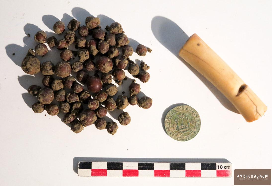 La mise au jour d’un habitat élitaire des XVe-XVIe siècle extérieur au couvent sous l’aile nord-est, et surtout de sa cuve de latrine, constituent une des surprises de cette opération. Elle nous éclaire sur l’espace situé entre les deux murailles successives du Chambéry médiéval. Le corpus mobilier mis au jour dans les latrines de cet habitat forme un ensemble particulièrement intéressant pour la fin du Moyen Âge et le début de la période moderne. Les carreaux de poêle constituent, au sein de ce corpus, un ensemble exceptionnel du point de vue des corpus connus à l’échelle régionale.