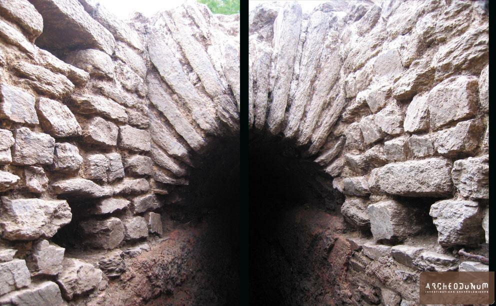 L’installation des tombes au contact direct de l’aqueduc témoigne de la disparition des mesures de protection entourant la structure hydraulique. Par conséquent, elle signe la fin de son fonctionnement normal et, probablement, son abandon.