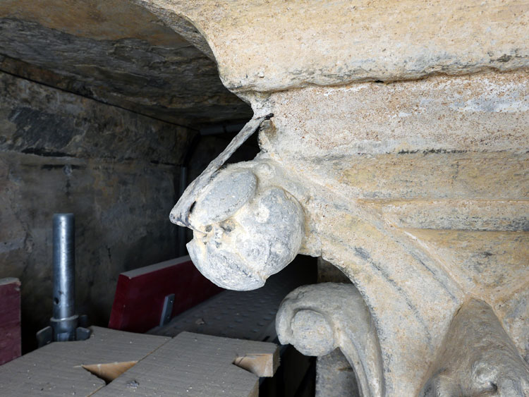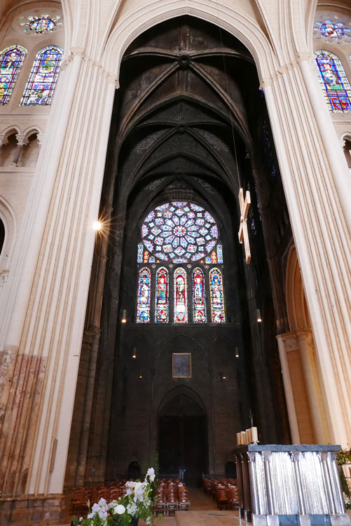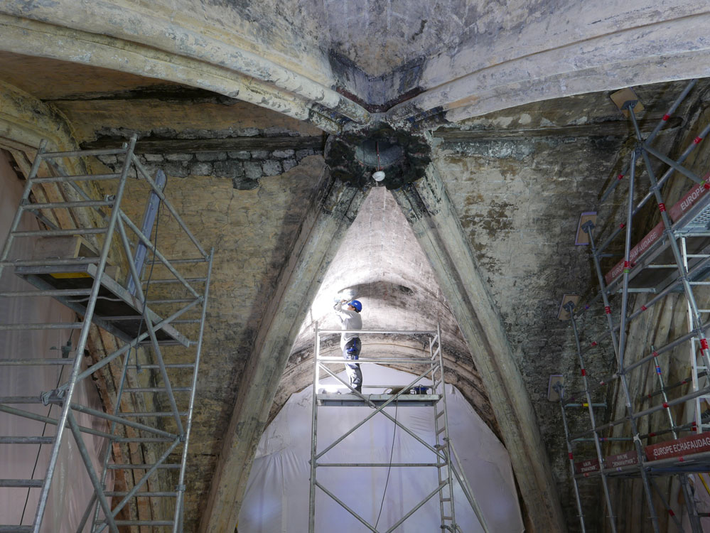 Les archéologues ont mené des analyses sur les tirants visibles dans les voûtes et qui, jusqu’à présent, étaient restés inaccessibles. Dans la travée nord, contre la croisée, ces deux longues pièces de chêne (au moins 7,5 m) ont été scellées dans la voûte au moment de la construction, renforçant ainsi les parties hautes. L’analyse dendrochronologique permet de dater l’abattage de ces bois entre 1210 et 1237. Ces datations sont un apport important quant à la connaissance de la chronologie de construction de la cathédrale.