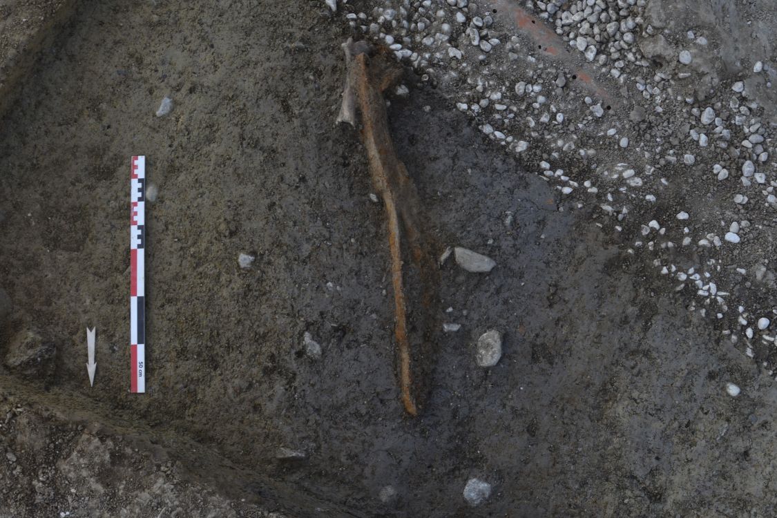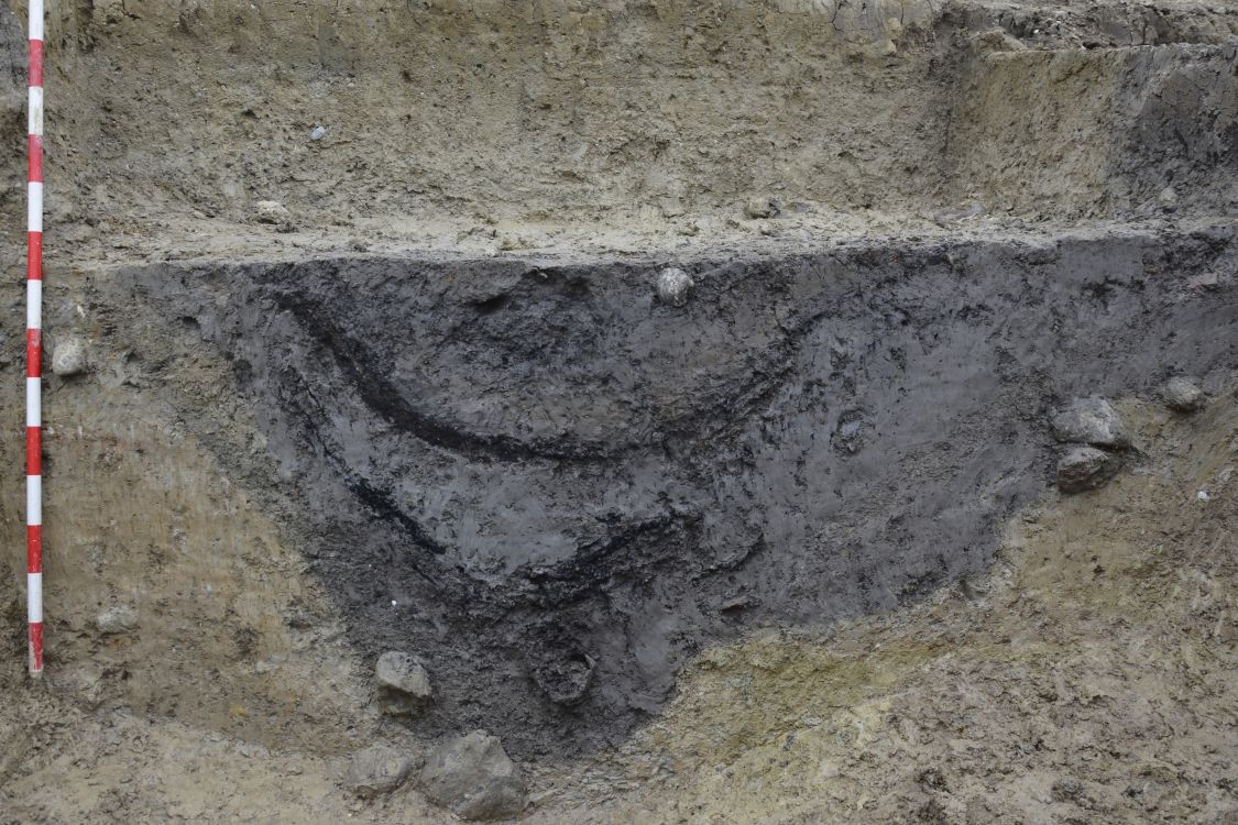 La première zone se développe le long de la route cantonale RC 293b à l’extrémité occidentale de la boucle et couvre une surface de 6500 m². Cette fouille extensive a permis d’observer et de documenter la géomorphologie de la frange septentrionale du cône alluvial du Talent. Une succession d’occupations humaines y ont trouvé un terrain propice à leur développement. Une première occupation néolithique (5210-4940 av. J.-C.) a été identifiée dans un paléosol palustre par la présence d’éléments céramiques et lithiques. Dépassant le cadre opérationnel prévu, ce niveau profond n’a pas été fouillé et n’a pas pu être davantage caractérisé. La phase suivante comprend deux états à l’âge du Bronze ancien (BzA2a) et à la transition Bronze ancien-moyen (BzA2b-BzB). Ce second état est matérialisé par des ensembles de trous de poteau, de fosses et de mobilier domestique. Ces vestiges structurés témoignent de la présence d’un habitat alors installé en bordure de la plaine inondée. Une sépulture à inhumation individuelle isolée s’insère stratigraphiquement parmi ces vestiges, mais l’absence de datation ne permet pas de l’y associer. Elle est toutefois isolée des phases plus récentes par des apports sédimentaires accrus au cours du Bronze moyen. Cette période est marquée par un apparent abandon de la zone. Une reprise d’occupation au Bronze final, étendue mais diffuse, est marquée par des concentrations de céramiques éparses, une fosse de stockage et quelques foyers. Un réinvestissement rural intensif s’opère ensuite dès la fin de la période augustéenne et engendre une importante érosion. Un potentiel niveau laténien est ainsi effacé et seuls subsistent une portion d’un profond puits ainsi que quelques éléments mobiliers intrusifs au sein de structures plus récentes. Dès lors, les occupations du Haut-Empire comptent au moins deux états, du 1ᵉʳ s. ap. J.-C. et du 2ᵉ au 3ᵉ s. ap. J.-C. Un troisième état plus tardif (4ᵉ au 5ᵉ s. ap. J.-C.) est uniquement matérialisé par des marqueurs éparses et en position secondaire. S’ensuivent de rares témoins de passage au cours du Haut Moyen Âge (7e au 9e siècle ap. J.-C.).