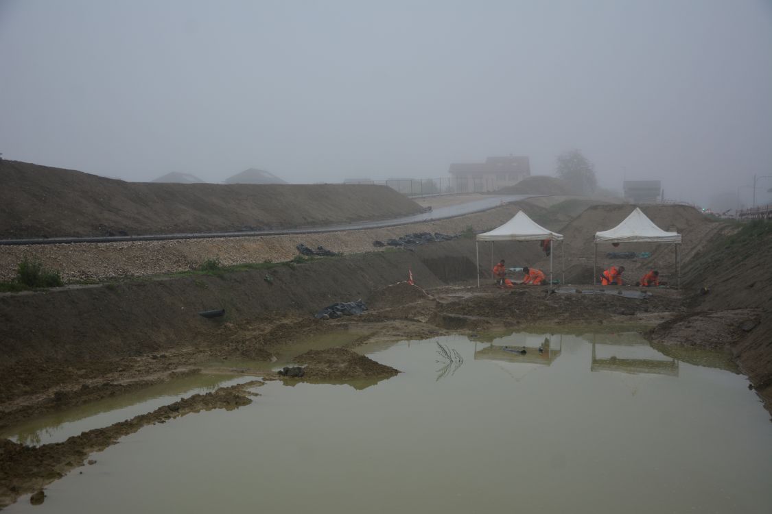 Cette opération d’archéologie préventive a été conduite dans le cadre des travaux préparatoires du projet de modernisation et de raccordement de la ligne de chemin de fer Orbe-Chavornay. Entreprise par la compagnie concessionnée Travys SA, la réalisation d’un nouveau tracé ferroviaire a ainsi pour objectif de faciliter les correspondances avec le RER Vaud. À la hauteur de Chavornay, où les coteaux marneux forment un promontoire éperonnant la plaine de l’Orbe, cette nouvelle voie se dessine sous la forme d’une boucle contournant ce relief par le nord. Le long de ce tracé, les fouilles se sont déroulées sur deux zones distinctes, totalisant une surface effective de 14700 m², entre le 3 juin et le 29 novembre 2024.