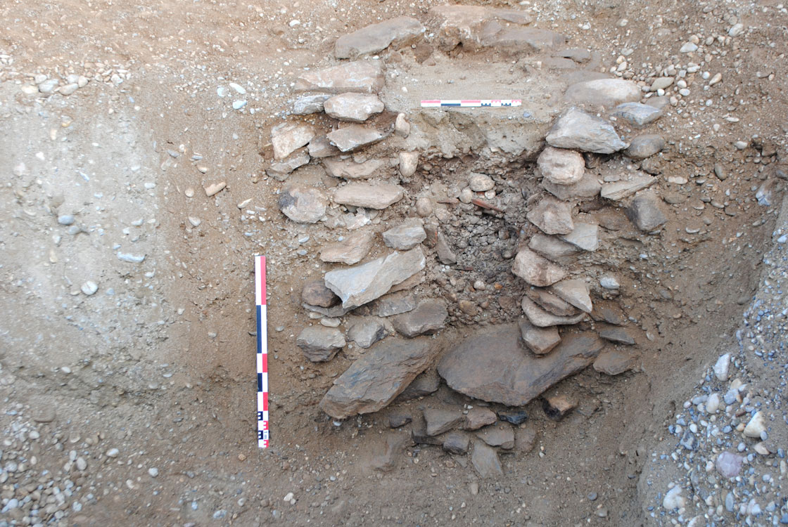 Les plus anciens indices d’occupation ont été mis au jour à l’extrémité sud de l’emprise avec un petit ensemble de trous de poteau formant un petit bâtiment rectangulaire à deux nefs. Un foyer implanté à l’extérieur parait être en lien avec cette occupation. Seule une datation radiocarbone nous permet de replacer cette occupation au Bronze ancien.