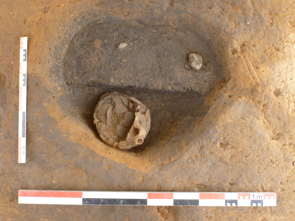 Après un hiatus de plusieurs siècles, le secteur est de nouveau occupé à l’époque tibérienne. Un premier fossé d’enclos délimite et structure l’espace consacré à l’habitat et aux activités artisanales. A cette première époque sont liés une série de foyers et de fosses, une grande fosse d’extraction de matériaux ainsi qu’un probable espace aménagé de travail ou d’artisanat. Les traces des premiers aménagements liés à la structure d’habitat (sablières basses, radier, trous de poteau et fosse) nous sont apparues de manière ténue, masquées en partie par l’implantation de structures postérieures.