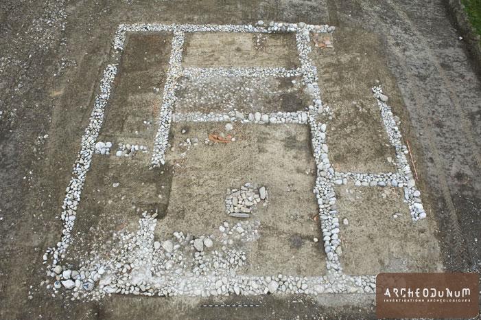 Les structures postérieures à la l’époque romaine sont très diverses et couvrent un large spectre, témoignant vraisemblablement d’une occupation humaine plus ou moins continue du territoire de la commune. Des traces ténues d’occupation postérieur au IIIe s. ap. J.-C. sont présentent dans les bâtiments 1 et 2. Dans ce même secteur, cinq tombes à inhumation datées du VII-VIIIe s. sont implantées de manière relativement dispersée. Puis, entre le XIe et le XIIe s., deux fosses à chaux dont la production ne semble pas destinée à la construction mais plutôt à une utilisation agricole ou sanitaire sont implantées dans la cour du bâtiment 1. Finalement, la structure la plus récente est un fossé de délimitation parcellaire qui a pu être identifié sur le cadastre français de 1872.