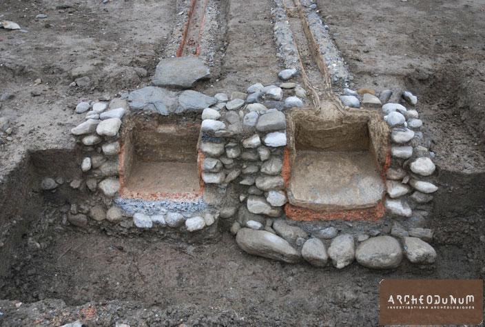 La majorité des vestiges sur le site sont d’époque romaine et se répartissent en trois catégories. Un système d’aqueducs a été reconnu dans la partie ouest de la fouille. Il s’agit de deux amenées d’eau de provenance opposée (est et ouest) convergeant pour se diriger ensuite parallèlement en direction du sud-est. Leur chronologie relative et absolue n’a pas pu être déterminée. Le tracé oriental a été précédemment reconnu  sur plus de 200 m sous l’allée des Jonquilles à l’est de la fouille. Un autre tronçon avait également été dégagé sous le lotissement Charles quelques centaines de mètres en amont. Ils alimentent vraisemblablement les constructions reconnues au sud de la commune dans le secteur de la Rachy ou du Chapitre.