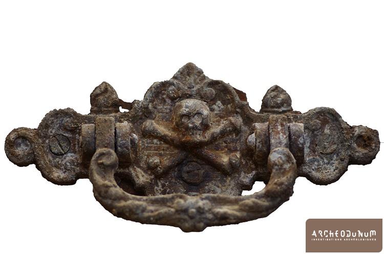 Cette intervention, dont le propos scientifique est la constitution d’une série de squelettes identifiés, a abouti cette année au prélèvement de 58 squelettes, qui s’ajoutent au 333 de la campagne précédente. Elle a également livré une grande diversité d’artefacts (éléments d’assemblages de cercueil, textiles, agrafes vestimentaires, épingles, boutons, boucles de ceinture, peignes à chignon, médailles religieuses, dentiers, etc.).
