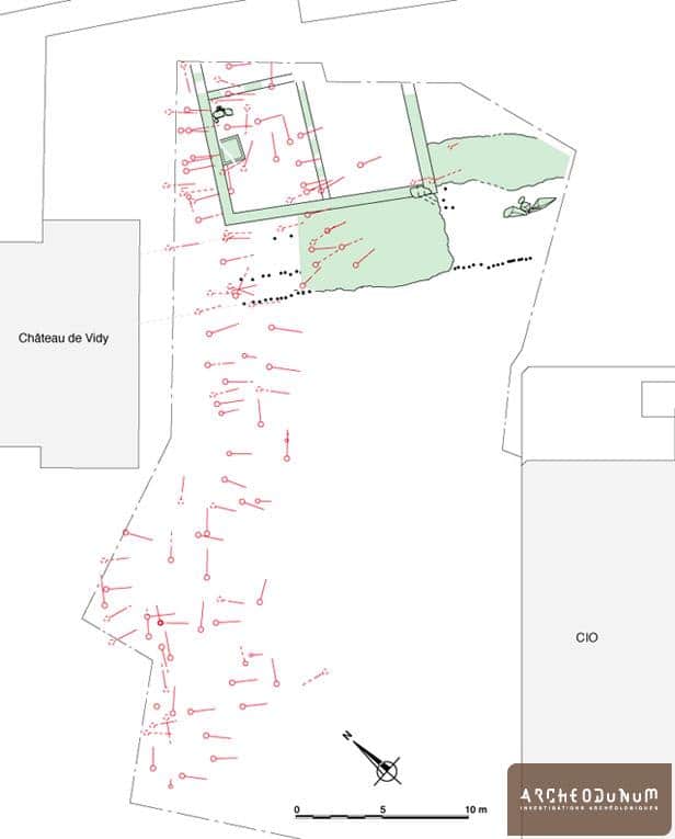 Un cimetière, encore signalé sur un plan du XVIIe siècle, se développe sur toute la partie nord-ouest de la parcelle fouillée. Les 111 sépultures découvertes correspondent à une portion d’une aire funéraire qui devait être en relation avec l’église de Vidy, mentionnée pour la première fois au début du XIIIe siècle, mais vraisemblablement plus ancienne. Faute d’objets régulièrement déposés dans les tombes, leur datation est assez difficile à préciser. Les plus anciennes pourraient remonter à la fin de l’époque romaine, comme en témoignent deux monnaies de la fin du IVe siècle. Les sépultures plus récentes doivent correspondre au cimetière médiéval et moderne. La superposition des tombes, leurs orientations variables et des modifications des pratiques funéraires laissent entrevoir plusieurs phases d’inhumations successives, que la suite de l’étude permettra sans doute de clarifier. Ces sépultures témoignent du maintien d’une petite communauté sur les rives du lac après le déplacement de l’agglomération principale sur la colline de la Cité, à partir du IVe siècle.