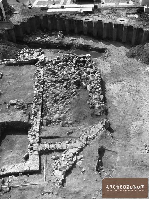 Cette fouille a été réalisée à l’occasion de l’extension du siège du CIO. Dans le tiers nord-est du chantier, ont été dégagés des aménagements des rives romaines, constitués d’enrochements, dans la prolongation de ceux relevés au sud-est en 1990.