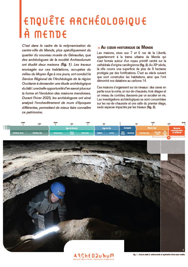 Dans le cadre de la redynamisation du centre-ville de Mende, deux maisons sont réhabilitées pour recevoir des commerces dans le quartier du nouveau musée du Gévaudan. Les travaux envisagés sur les rez-de-chaussée des maisons 7-9 rue de la Liberté à Mende ont conduit le service régional de l’Archéologie de la région Occitanie à prescrire une étude archéologique du bâti. Durant l’hiver 2023, une équipe d’archéologues a étudié l’enchevêtrement de murs d’époques différentes, du Moyen Âge à nos jours.