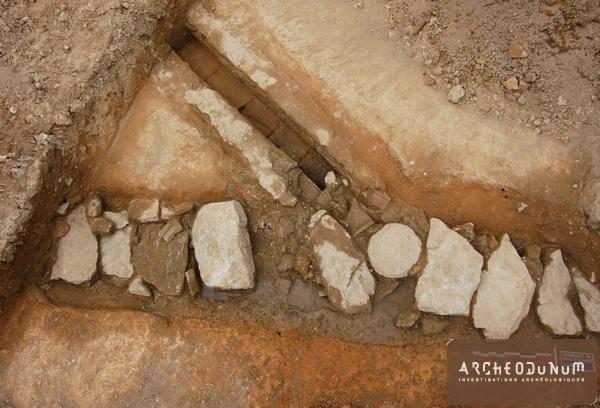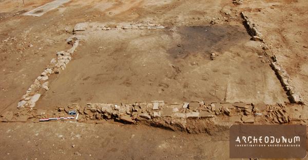 L’ensemble de la parcelle a été décapé mécaniquement jusqu’au niveau d’apparition des premières traces d’occupation antique, entre 0,50 et 1,50 m sous le niveau goudronné actuel. Les vestiges étaient globalement en mauvais état de conservation, en particulier dans la partie nord-est du chantier. Cependant, leur importance n’a pas permis de réaliser une fouille extensive sur l’ensemble du site. Des secteurs ont été privilégiés et des sondages mécaniques pratiqués en complément de la fouille manuelle. Le substrat géologique a néanmoins été atteint sur une bonne partie de l’emprise de l’opération.