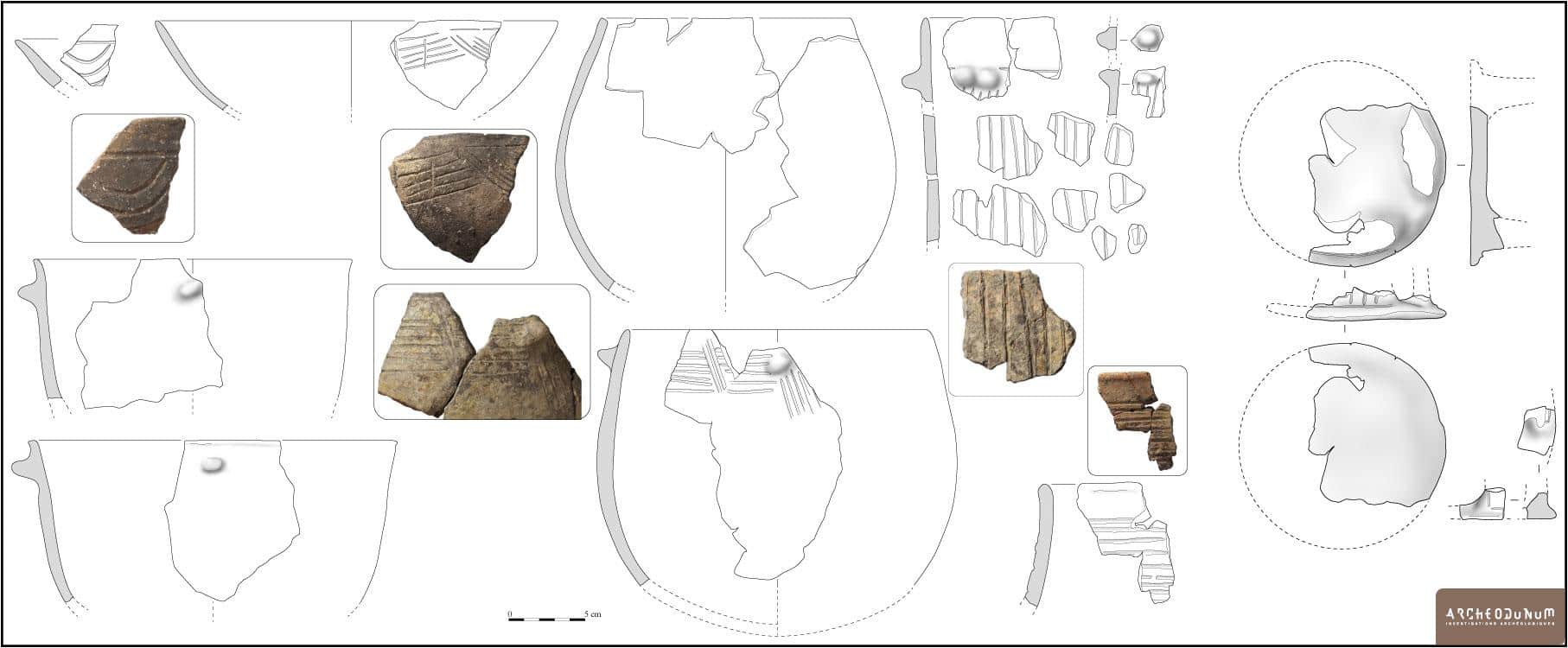 Quelques tessons décorés au cardium avaient été mis en évidence lors du diagnostic (Ferber, in Chatellier 2017) et la fouille jouxte le gisement des "Malalônes" qui est reconnu pour son occupation de la fin du Néolithique ancien (Linossier et al. 1997), mais les indices de cette période sont rares sur notre fouille.