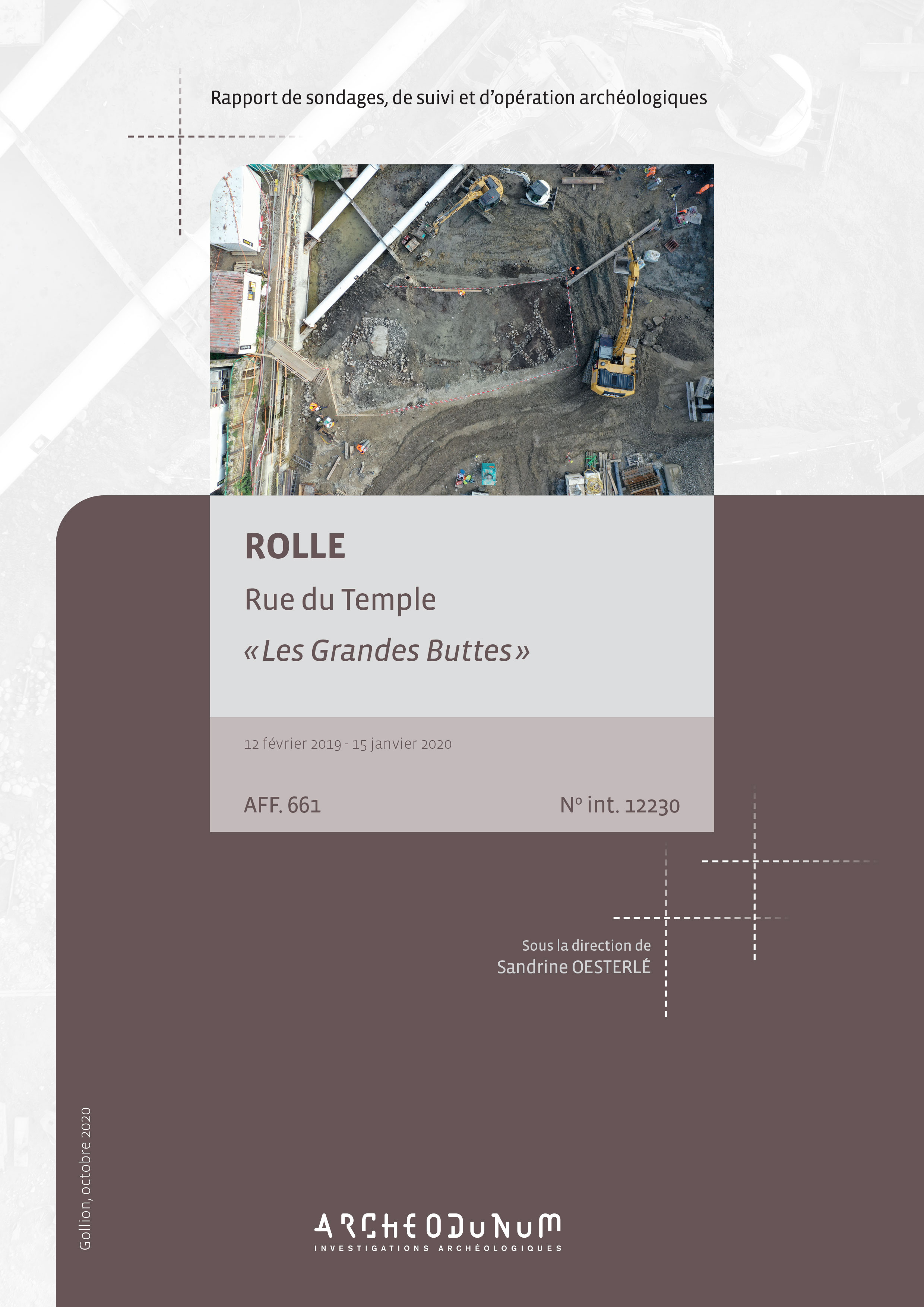 Une opération de surveillance et de fouille archéologiques s’est déroulée entre le 12 février 2019 et le 15 janvier 2020 dans le centre historique de Rolle, lors des travaux de terrassement liés à la construction d’un bâtiment commercial et locatif équipé d’un parking souterrain.