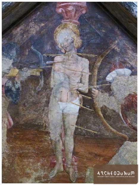 représentant le martyre de Saint-Sébastien et ornant les surfaces de la