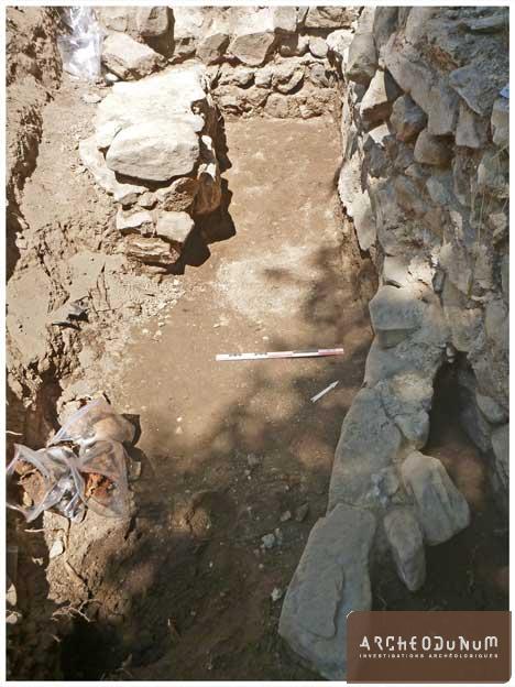 sur l’emprise des tranchées de mise hors eau de l’édifice par une équipe