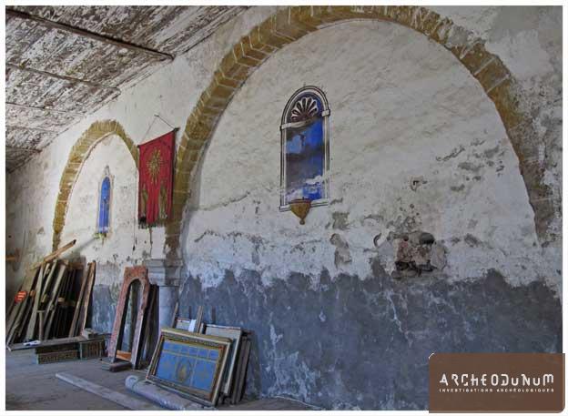 réalisées le long des murs de l’extrémité ouest de la nef à l’intérieur