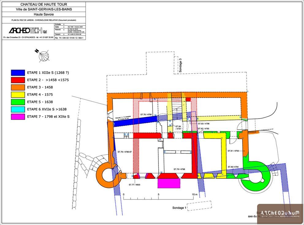 Les investigations préliminaires, menées durant l’été 2006 sur les élévations de l’édifice, ont permis de dénombrer sept étapes de construction qui se développent entre la seconde moitié du XIIIe siècle et la fin du XVIIIe siècle.