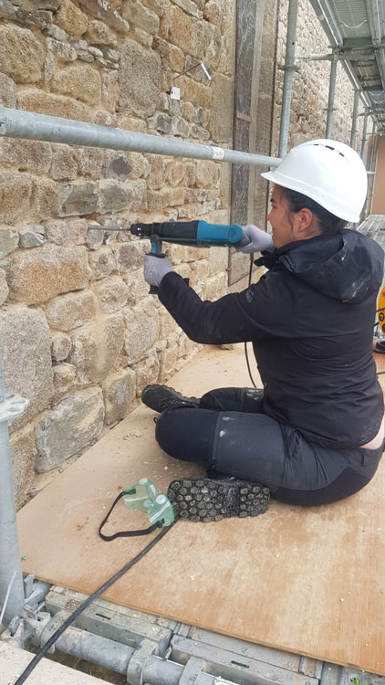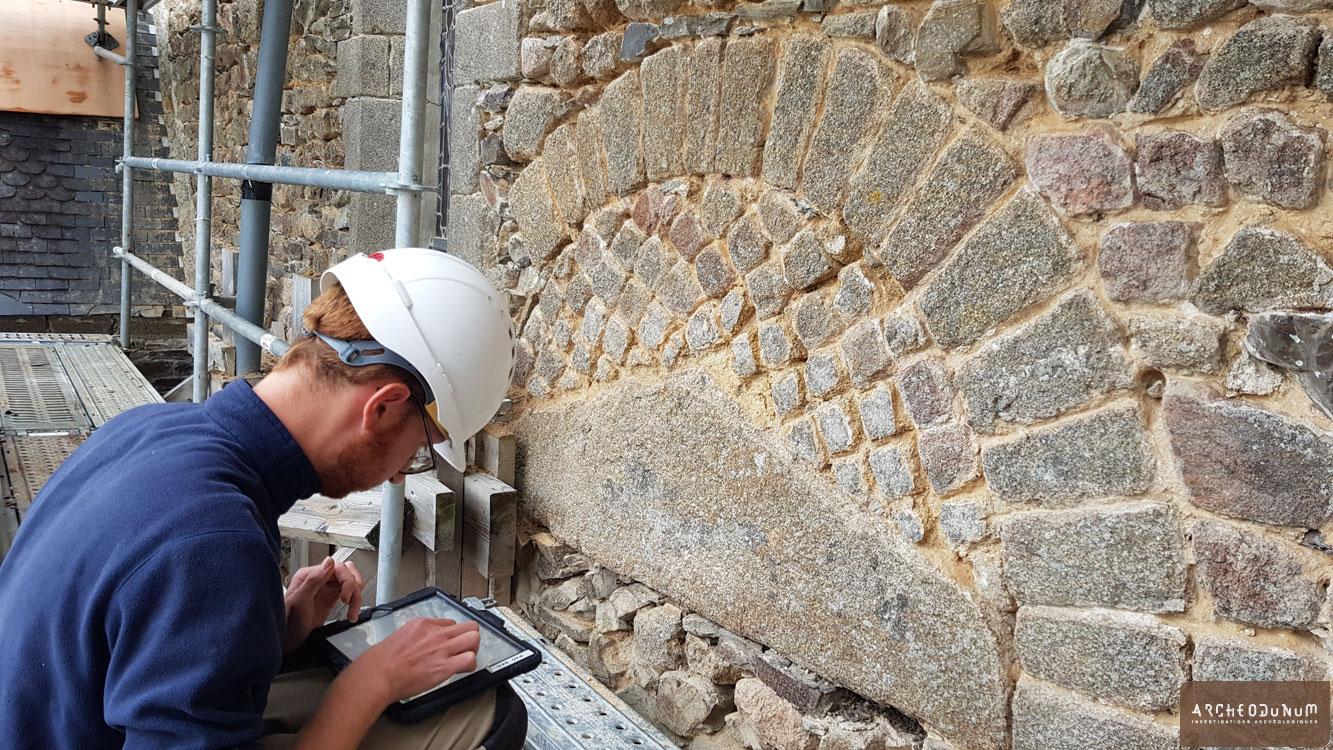 Des travaux de restaurations ont été initiés en 2021 dans le but de purger l’ensemble des enduits ciments de toutes les façades, hormis celle du gouttereau sud du chœur. La DRAC au regard de l’intérêt patrimonial de l’édifice protégé au titre des Monuments Historiques a préconisé une étude archéologique du bâti pour identifier le phasage des programmes architecturaux de l’église de Saint-Jean-le-Thomas. Une autorisation de sondage a été délivrée pour que nous puissions étudier les façades justes après le piquage.