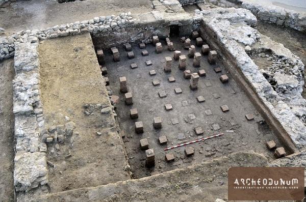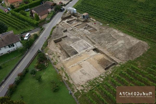 Les vestiges sont étagés sur un côteau assez raide, face au Léman, avec un net phénomène d’érosion au sommet de la parcelle. Ils appartiennent à de multiples états de construction - au moins cinq - suivant des orientations plus ou moins identiques. Les bâtiments les plus anciens, vraisemblablement en fonction dès le début notre ère, sont caractérisés par une architecture en terre et en bois, sur sablières basses et poteaux porteurs. Les différentes phases maçonnées se développent ensuite sur deux ailes, chacune dotée d’un portique, encadrant un angle de cour. Un espace thermal est créé en contrebas, au sud-ouest, lors d’une phase de réaménagement du site : deux pièces à hypocauste, l’une remarquablement conservée, sont connectées à un praefurnium aménagé avec des blocs de molasse ; les trois autres pièces du balneum sont caractérisées, respectivement, par un mur en abside, un bas de paroi peinte in situ et un épais soubassement maçonné (bassin ? citerne ?). Une phase tardive, datée probablement du IVe s., voit de nombreuses réfections, notamment l’oblitération des hypocaustes et l’installation de canaux chauffants dans l’ancien praefurnium. Ce phasage pourra être précisé par le biais d’études spécialisées ; les datations céramologiques (divers ensembles associés à la plupart des phases d’occupation) et dendrochronologiques (deux séries de pieux découvertes sous un mur de terrasse et sous un hypocauste) sont particulièrement attendues.