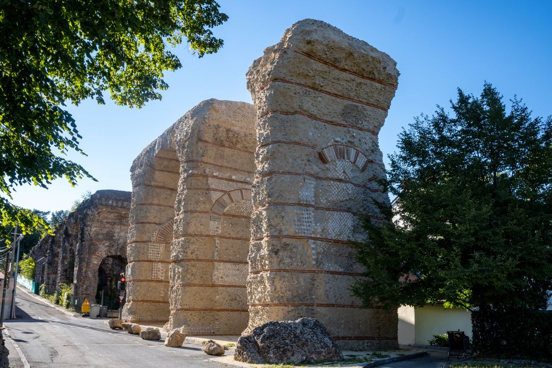 Les bouchages de l’embrasure des piles, qui sont intervenus dans un second temps, ont été réalisés avec des techniques semblables à celles mises en œuvre pour la construction des piles initiales. Le noyau du bouchage est constitué avec un blocage de maçonnerie en opus caementicium et l’élévation, divisée en épaulées entrecoupées de doubles arases de briques, est parementée en opus reticulatum. Épaulées et arases de briques coïncident avec celles des piédroits de la pile. Un soin particulier a notamment été apporté à cette liaison des parements, donnant l’illusion d’un appareil continu.