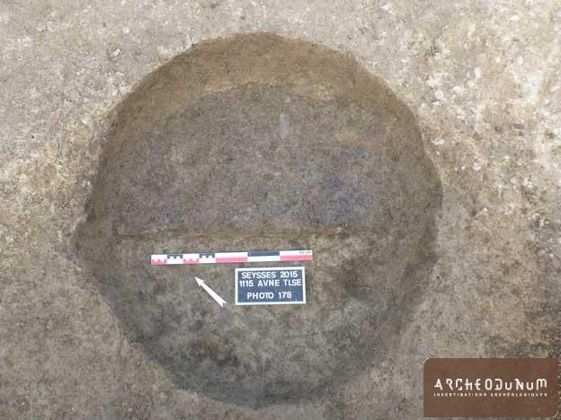 La cohérence de cette occupation vient de l’homogénéité des types de structures (30 silos, 22 fosses, deux puits et six éventuels silos supplémentaires). Les 30 silos sont ainsi répartis en trois ensembles, ou batteries, distant de quelques mètres. Leur répartition est le fait, probablement conjoint, de plusieurs facteurs. Le premier facteur est d’ordre topographique puisque sur une partie du site la remontée du toit de la grave (U.S. 04) semble avoir contraint l’implantation des structures dans les espaces de limons (U.S. 03), plus propices au creusement. Le second facteur est d’ordre anthropique puisque la partie sud-est du site voit la matérialisation de l’espace dévolu à l’ensilage par le creusement d’une grande fosse oblongue. Enfin, une contrainte sociale semble être à l’origine de la délimitation de l’espace situé au sud-ouest. Cette contrainte peut être d’ordre communautaire (espaces collectifs), fiscal (parcelles différentes) ou utilitaire (espace dédié à la circulation).