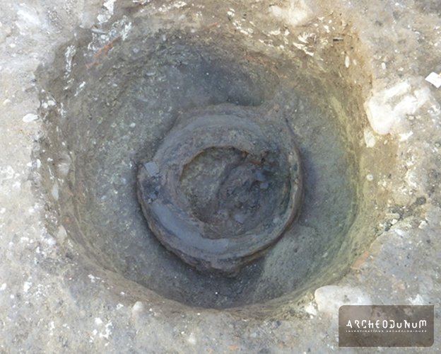 Du mois de mai au mois de novembre 2014, l’opération d’archéologie préventive réalisée au 16, rue des Trente-Six Ponts a permis de mettre au jour, d’observer et de documenter plusieurs phases d’occupation entre le Haut-Empire et l’époque contemporaine. Ces découvertes, associées aux fouilles plus anciennes, permettent de préciser la connaissance de ce secteur périurbain de Toulouse. Phase 1 et 2a : prémices d’un espace suburbain Les premières traces d’occupation du site datent du Haut-Empire. Un tronçon de fossé, orienté est-ouest, a été observé. Celui-ci, abandonné dans le courant du deuxième quart du Ier siècle ap. J.-C., pourrait appartenir à la perticae de Toulouse et donc correspondre au système de cadastration hors de la cité. Après un hiatus entre la fin du Ier siècle et la seconde moitié du IIIe siècle ap. J.-C., durant lequel aucune occupation n’est attestée si ce n’est la présence résiduelle de mobilier indiquant la fréquentation du site, on perçoit les conséquences de l’expansion urbaine de Toulouse durant les IIIe-IVe siècles. En effet, le site accueille les premières constructions traduisant l’attractivité de la ville et de la voie Narbonnaise. Trois bâtiments dont seules les fondations en galets nous sont parvenues ont été documenté. L’un d’entre eux reprend l’orientation fournie par le fossé du Haut-Empire témoignant de la continuité parcellaire dans cet espace périurbain de la ville. Les changements dans la topographie de la ville qui interviennent à la fin du IVe siècle et au début du Ve siècle entrainent une déprise de cet espace et la démolition des ensembles bâtis. Le site est alors dévolu à l’inhumation des défunts.