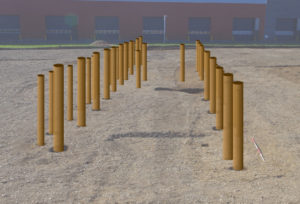 Évocation des poteaux du grand bâtiment de l'âge du Bronze