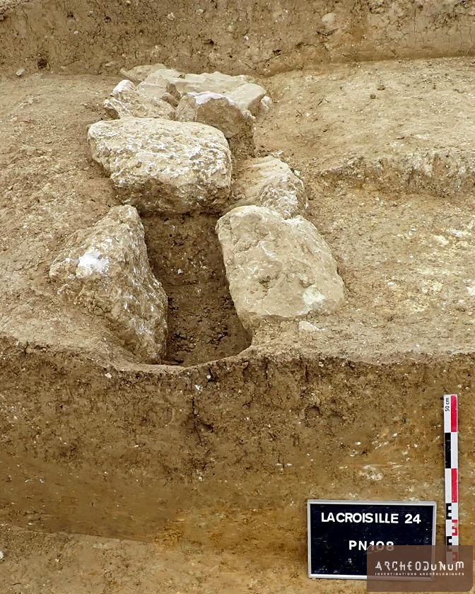 Fig. 6 : Les pierres de calage indiquent l’emplacement d’un poteau disparu.