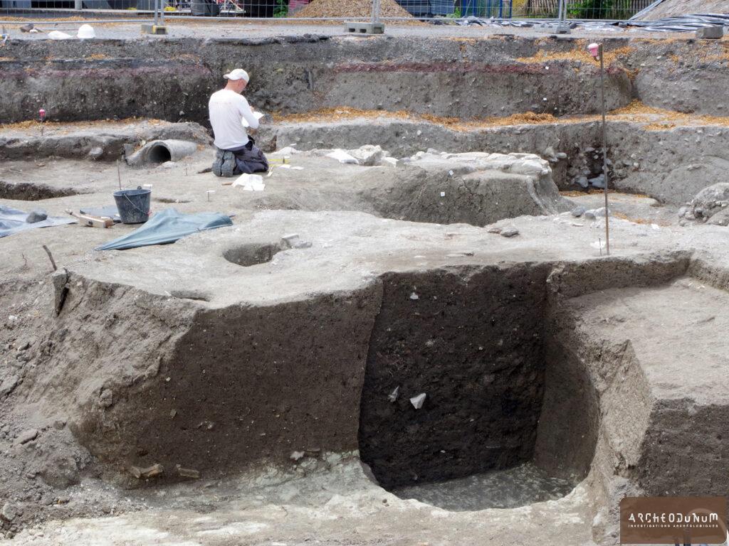 C’est depuis 2019 que les archéologues d’Archeodunum accompagnent le réaménagement de la place des Carmes, une opération d’urbanisme pilotée par Clermont Auvergne Métropole. Les fouilles ont été prescrites par le Service régional de l’archéologie (DRAC), qui contrôle également le bon déroulement du travail. Les découvertes sont remarquables et racontent l’évolution de ce secteur de Clermont-Ferrand entre l’époque romaine et aujourd’hui.