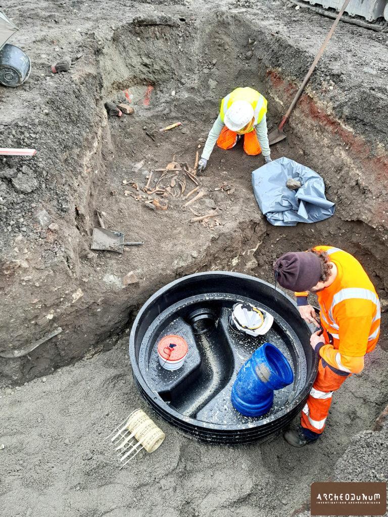 Fouille de sauvetage menée d’octobre 2021 à aout 2022 à la suite de la découverte fortuite d’ossements dans le cadre de la rénovation du collège Saint-Roch.