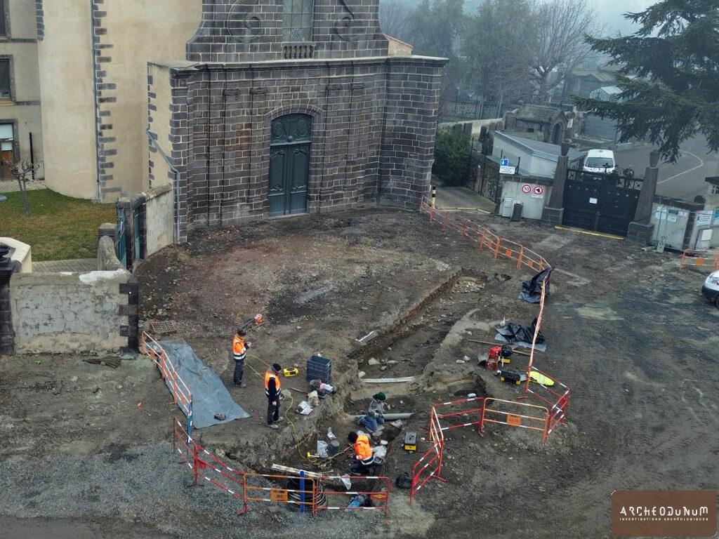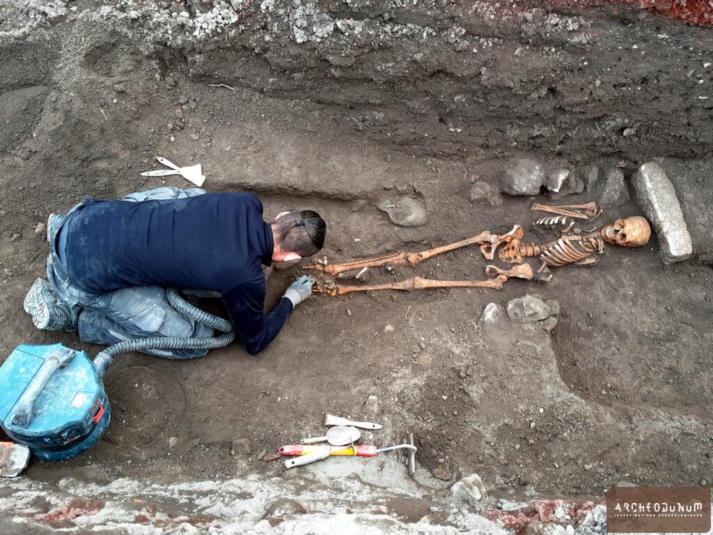 Une ultime phase d’investigations archéologiques s’est déroulée début 2025 sur le parvis de l’église ainsi que le long de la rue du Souvenir Français. Parmi de nombreux vestiges datant des époques romaine et médiévale, le résultat majeur est la découverte de plus d’une centaine de sépultures, appartenant probablement au cimetière de l’ancien monastère de Chantoin.