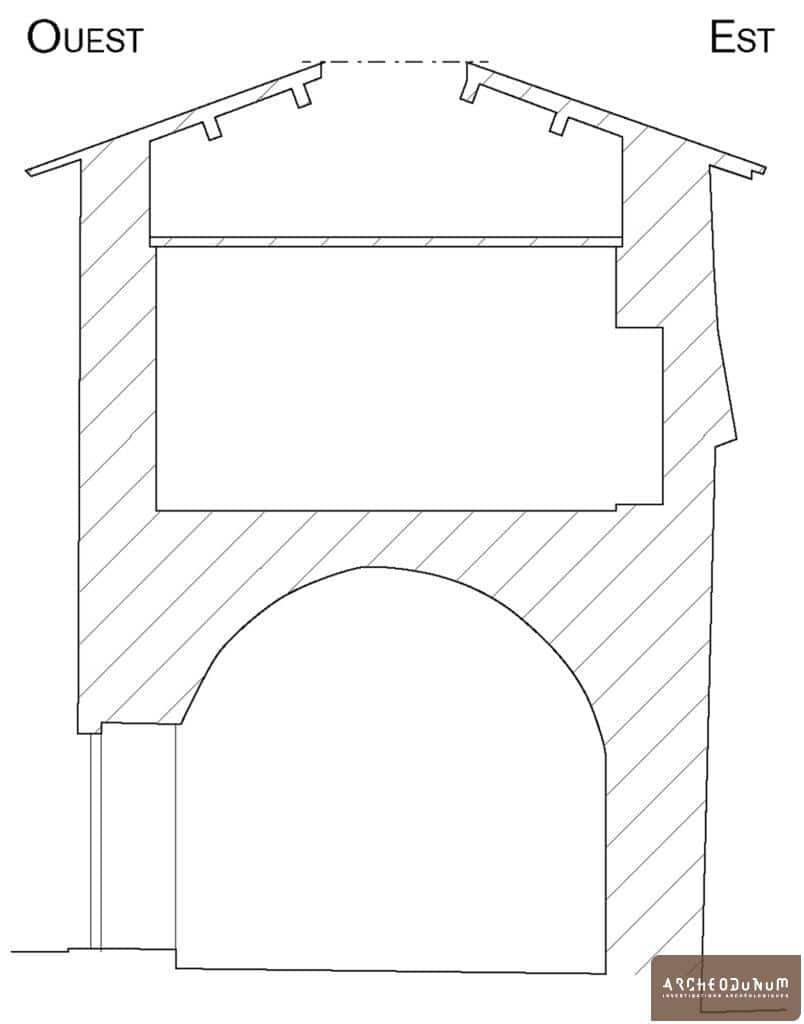 son mur est, sur 6 m de haut (fig. 5). À l’origine, la tour, plus vaste, s’étendait vers le sud et l’est. Elle a été dotée d’un contrefort, puis d’un mur taluté qui a par la suite été partiellement supprimé. L’intérieur a également été réaménagé à plusieurs reprises, notamment à la fin du XVe siècle pour transformer la tour en lieu d’habitation.
