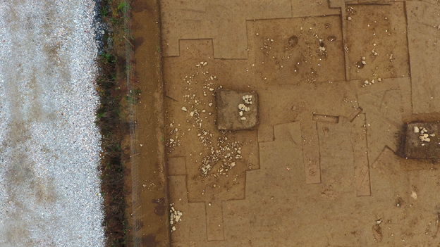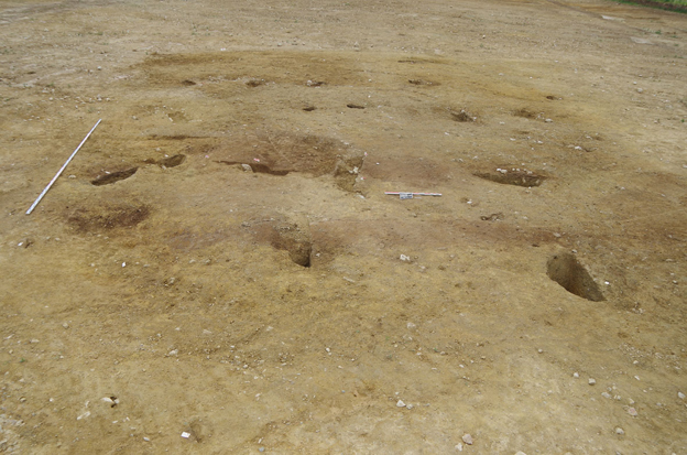 Enfin, à cinq kilomètres plus au nord-est, près de cinq hectares sont en cours de fouille avant l’implantation du Parc d’Activités de Saint-Caradec à Neulliac. Cette grande emprise décapée permet la découverte de multiples structures en creux, vestiges d’occupations du Néolithique et de l’âge du Bronze. Audrey Blanchard et Jimmy Ménager y dirigent la fouille de plusieurs bâtiments du Néolithique et d’enclos funéraires de l’âge du Bronze, entre autres témoignages de la Protohistoire. Ces vestiges présagent un apport d’informations importantes pour la connaissance de ces périodes en Bretagne, les bâtiments du Néolithique étant encore largement méconnus. [Accès à la notice complète]