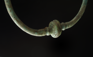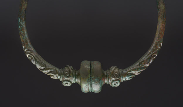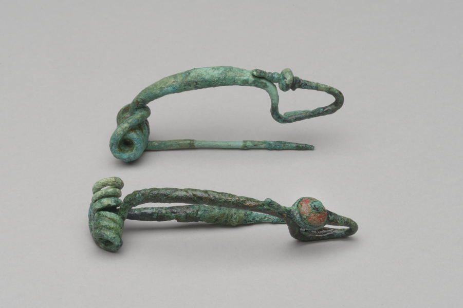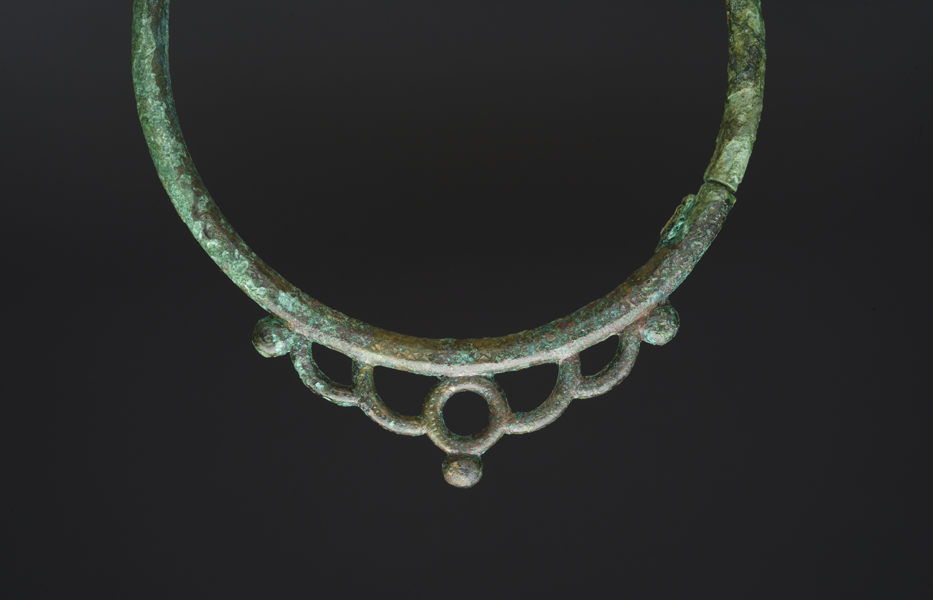 Parmi ces objets, sept torques (tours de cou) en bronze sont des parures féminines. Toutes différentes, leurs ornementations sont d’une remarquable finesse. Plusieurs fibules (broches) associent le bronze et le corail. Nous présentons ici une sélection de cette joaillerie d’exception.