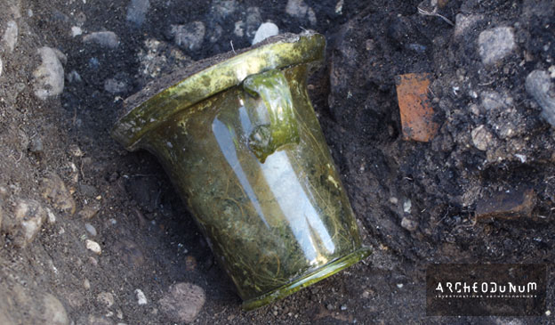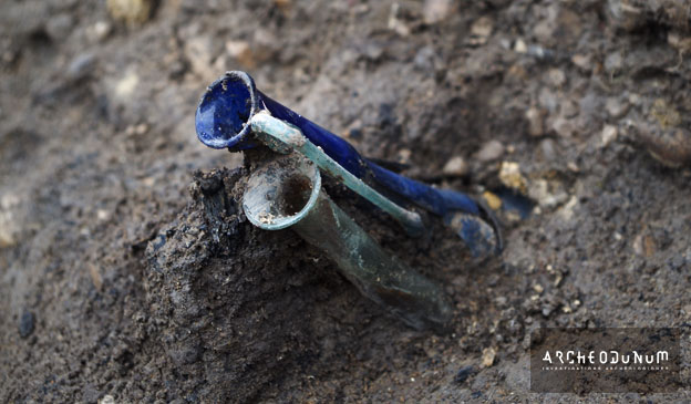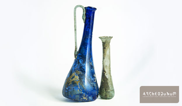 Des analyses physicochimiques réalisées sur trois récipients en verre ont permis de dire que, dans deux cas au moins, ils avaient été déposés remplis dans la tombe. Un fort signal de raisin indique ainsi la présence de vin ou de vinaigre, mélangé à une huile végétale parfumée, et dans un cas à de la cendre végétale (préparation de type savon) et dans un autre à un corps gras animal (probablement un produit laitier). Ces mélanges sont étonnants d’autant qu’ils se retrouvent dans des récipients totalement différents, à savoir deux balsamaires et un modiolus, et dans deux tombes éloignées spatialement et chronologiquement.