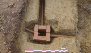 Nos archéologues ont commencé la fouille en retirant la terre végétale à l’aide de pelles mécaniques. Au-dessous, ils ont découvert de nombreuses traces de la mise en valeur des terres agricoles entre le XIXe et le XXe siècle. Trois réseaux de drains en terre cuite strient toute la zone (fig. 1-2). Plusieurs puits et des fosses de plantations d’arbres rappellent la présence de jardins ouvriers, créés dans les années 1960.